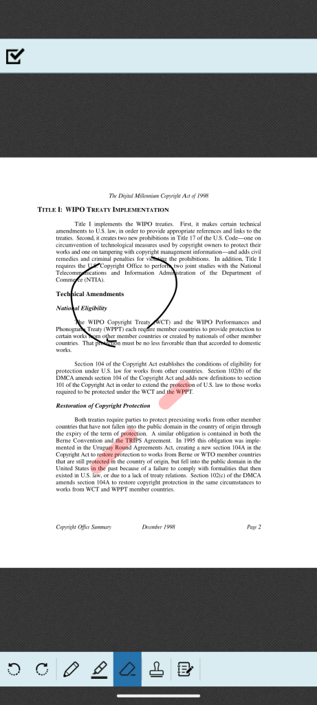 をタップするとボタンがハイライトされ、画面上にフリーハンドの線を書くことができます。