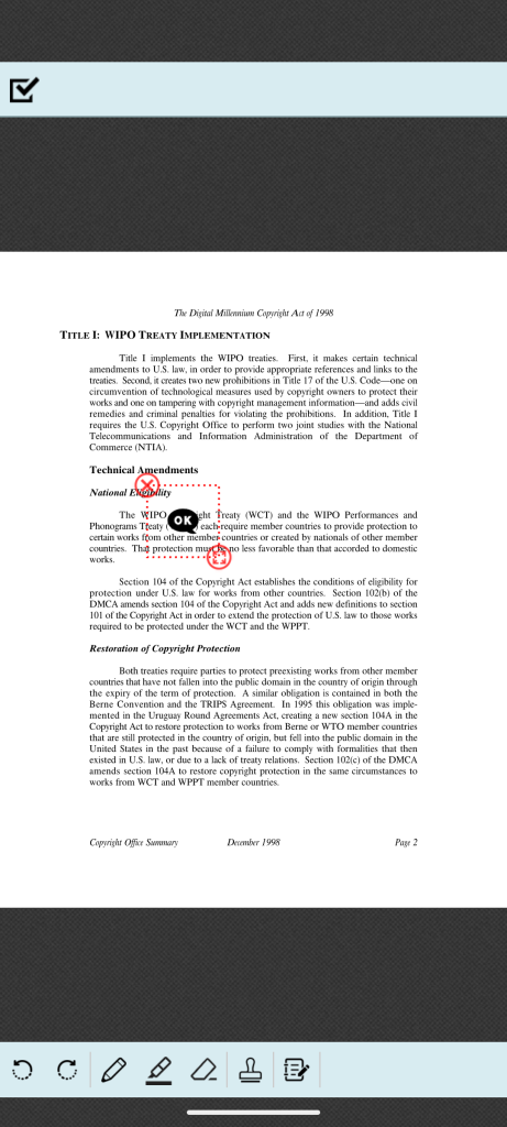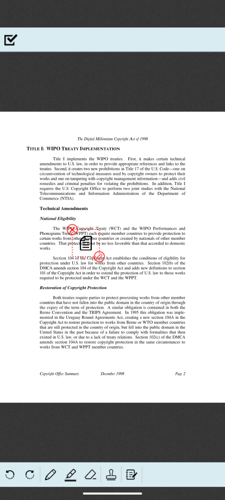 をタップしてフリーハンドツール、マーカーツールを終了します。その後、変更したい線をタップして赤枠が表示されたら、以下の操作が可能です。