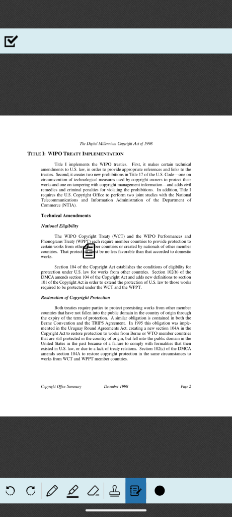 注釈編集ボタン。ページ上に注釈を追加することができます。最初からフリーハンド描画ツールが選択された状態になります。 ※ご利用のアプリ、書籍によって表示されない場合があります。 |